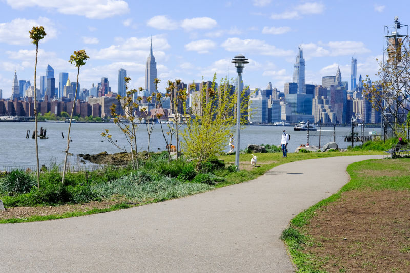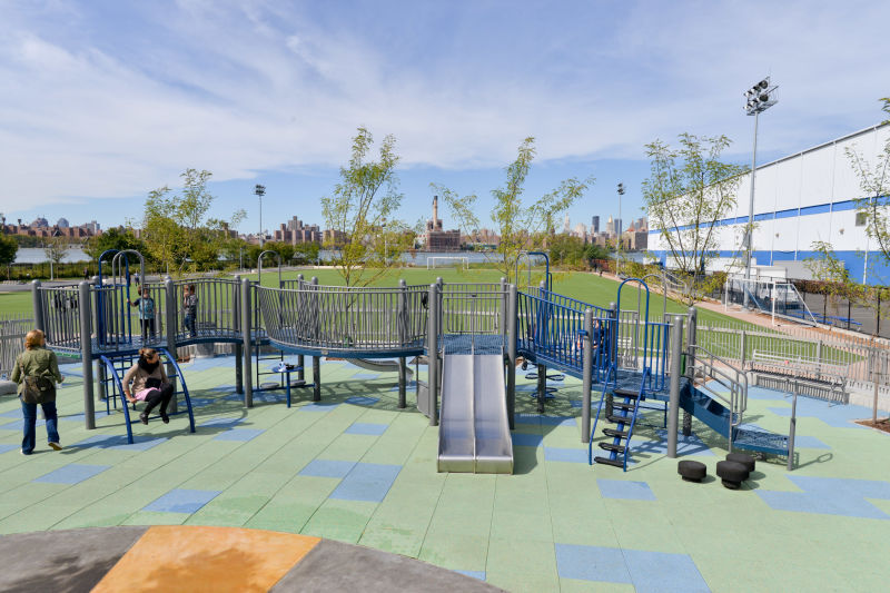 This park incorporates natural and urban structures, bringing Greenpoint's waterfront and natural areas into the community around it. Visitors can admire the views or use the park's facilities for active recreation.