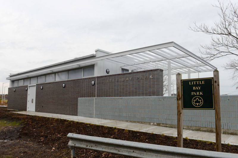 Two of Little Bay Park’s boundaries are important thoroughfares in the borough of Queens: Cross Island Parkway and Utopia Parkway. The third boundary is beachfront. Parks acquired the property via condemnation in September 1950. The agency planned to develop the shoreline area but the construction of the Throgs Neck Bridge and the fiscal crisis of the 1970s put an end to the plan. Previously known as Clearview Park, Parks assigned the property’s present name in 1973.