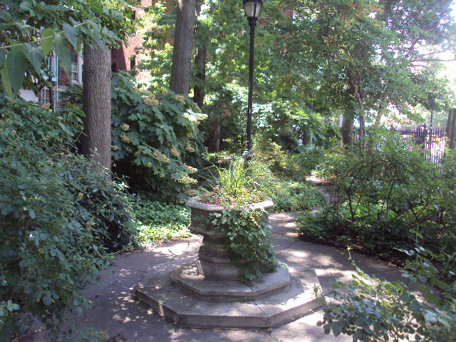 This small park is a memorial to a not-quite-gone and not-quite-forgotten water feature of Lower Manhattan. When Dutch colonists settled in Manhattan in the 1620s, they learned from local Native Americans about a small brook that was full of trout. It originated near what is now Gramercy Square, burbled its way through (mostly beneath) Greenwich Village, and emptied into the Hudson at what is now West Houston Street.