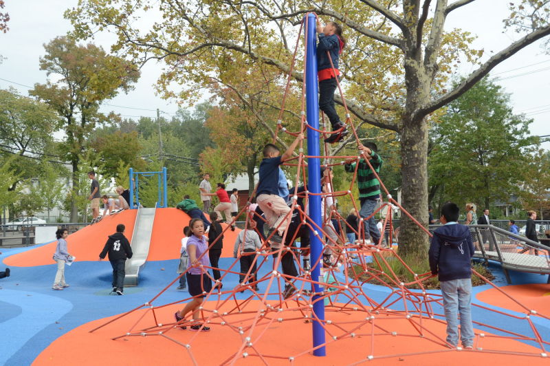 Schmul Park is the Travis neighborhood’s entrance to Freshkills Park and sits at its southwestern edge. The park includes a brightly-colored playground with a spray shower, swings, sand box, and brightly colored play equipment. The park also includes two handball courts, basketball courts, an open lawn for lounging and sunning, native plantings, a comfort station, and a lighted pathway that leads to the softball field and future North Park of Freshkills.