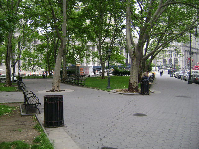 This park in the heart of New York City's civic center is named for patriot, author, humanitarian, and political visionary Thomas Paine (1737-1809). The land that is now Thomas Paine Park was once part of a freshwater swamp surrounded, ironically, by three former British prisons for revolutionaries. One of them was The Bridewell, the infamous detention center where many inmates died from wind and cold exposure while awaiting sentencing. After the war, the area went through more hard times. In the 19th century, it was part of one of the most notorious slums in the country: Five Points, a community of predominantly Irish immigrants. After calls for reform, the City acquired and condemned most of the unsafe buildings between 1887 and 1894.