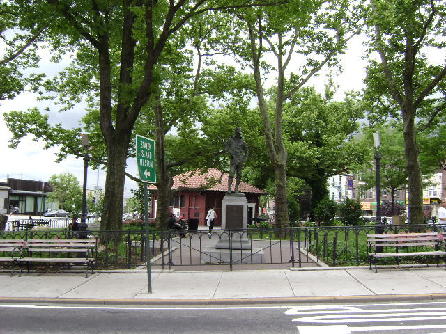 The Hiker statue sculpted by Allen G. Newman that honors the local soldiers of the Spanish-American War (1898-1902) is still prominently displayed in the park. The statue was modeled after foot soldiers who participated in long marches in the Cuban terrain. In the War, the United States allied with the Cubans to defeat the Spain for control of colonial power in the Western hemisphere. The Hiker in Tompkinsville Park was the official monument of the United Spanish War Veterans and was located in front of Staten Island Borough Hall. The statue was moved to Tompkinsville Park in 1925 after a series of cars hit the statue.
